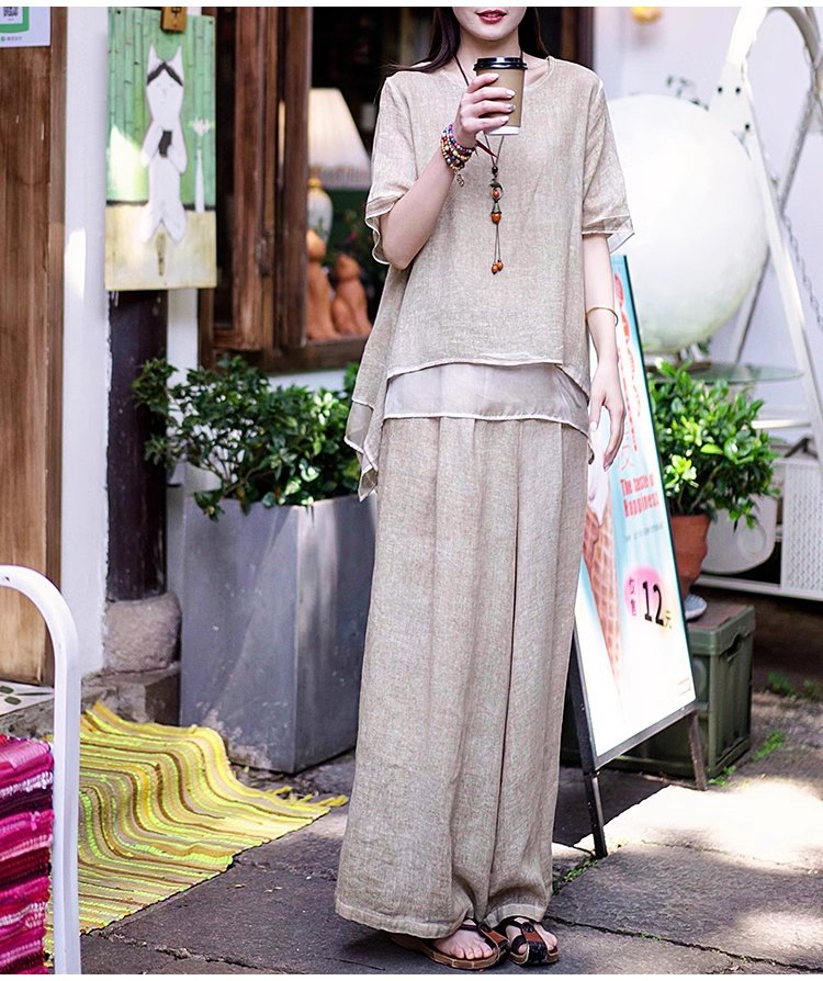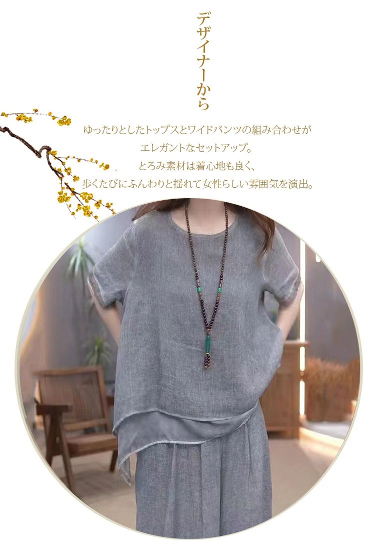 【視覚的にスリムで5cmアップ】不規則な綿麻の上下セット【伝統職人の技術】