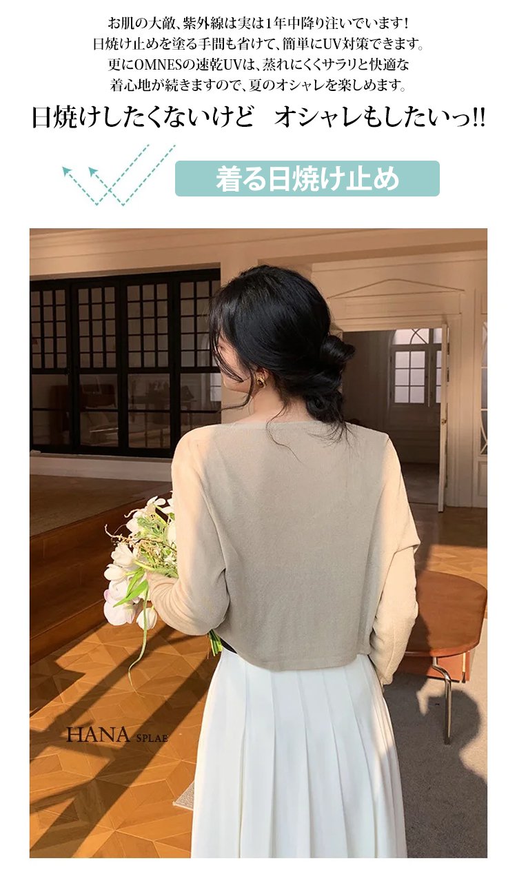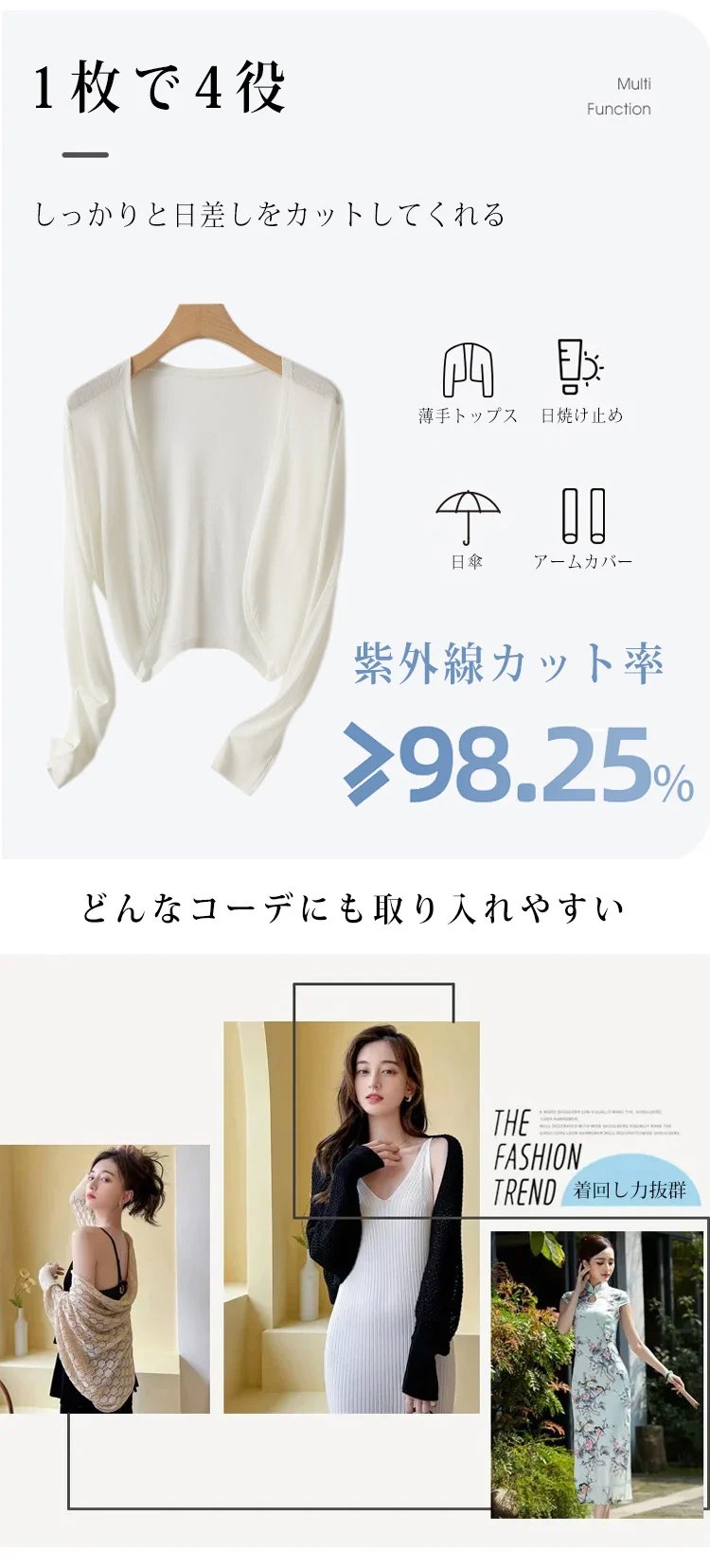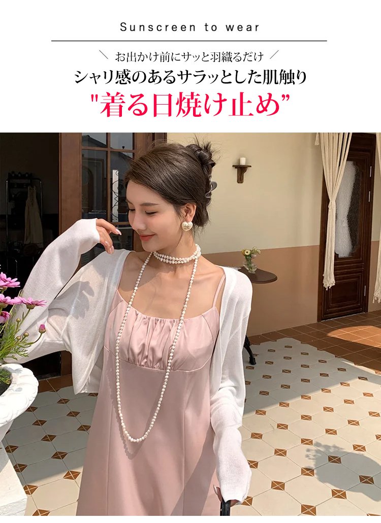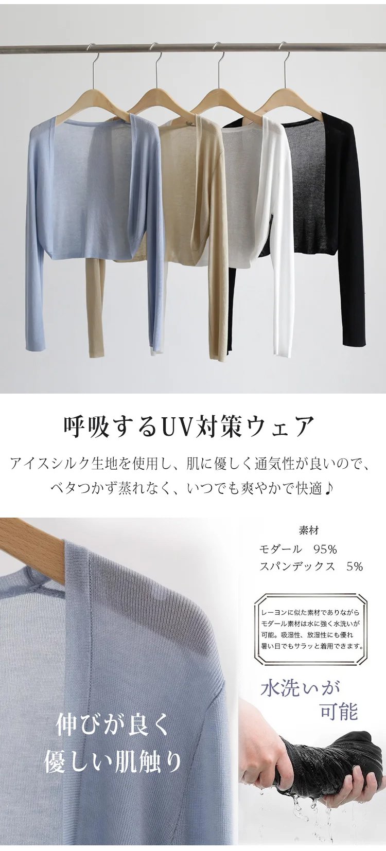 暑がりな方にはぜひ一度試していただきたいアイスシルクカーディガンです。ニューヨークのナイレックス繊維研究所と東京ファッションデザイン協会が共同開発しました。生地には95%東レモダールと5%スパンデックスを使用し、肌に触れると瞬時に5~10度も涼しく感じられます。滑らかで柔らかな手触り、一日中着ていても汗ばまずサラサラ感が続きます。肩部分は人間工学に基づいた調整デザインで、フリーサイズなのでどなたでもフィットします。