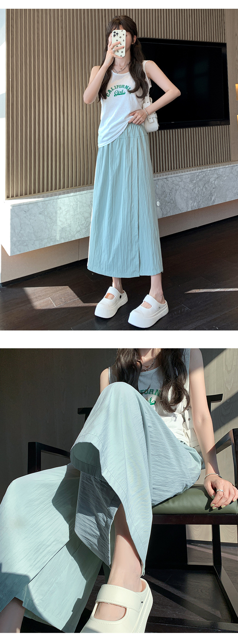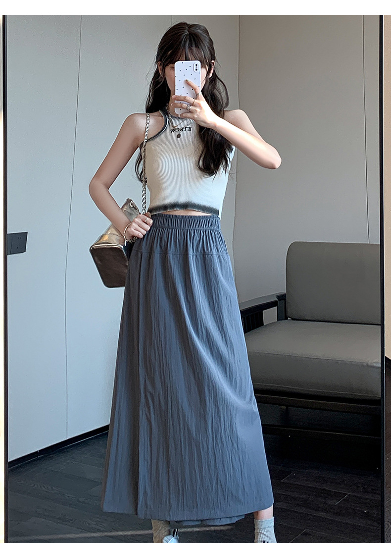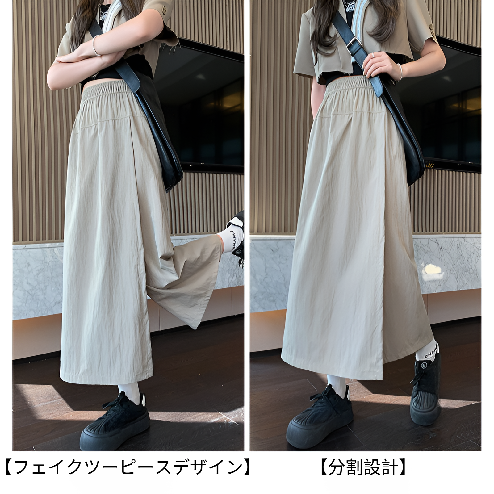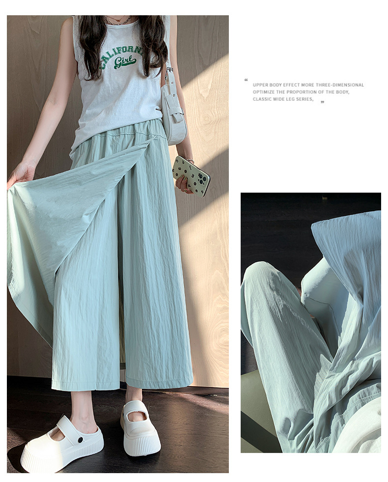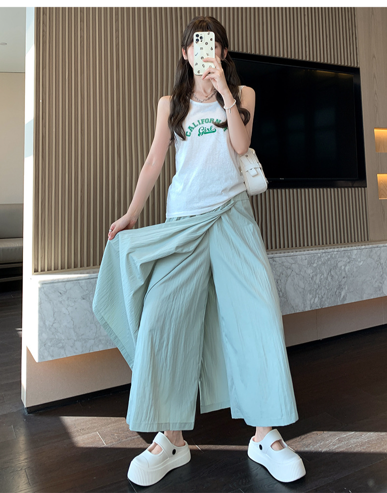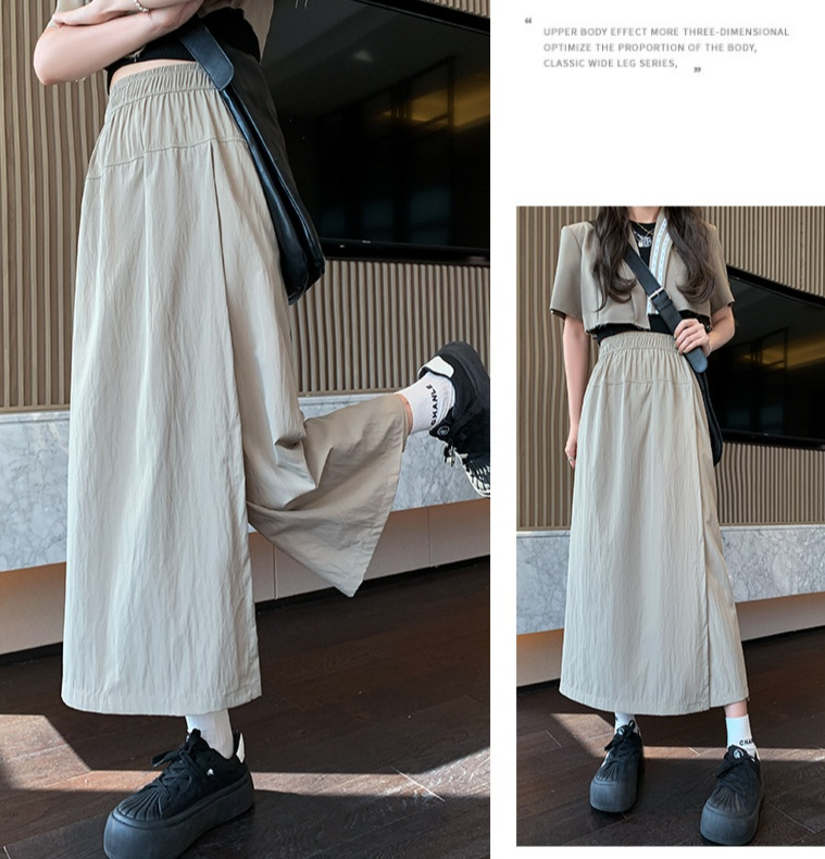 グレーヤマモトワークウェアスカートパンツレディース夏レディースハイウエストパンツAラインスプリットスカートパンツ小さいサイズアイスシルクワイドレッグパンツ
