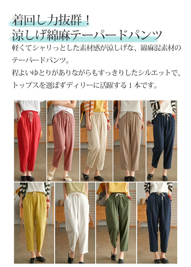 【天皇御用の富士吉田百年工房製】夏用の無地の綿麻サルエルパンツ