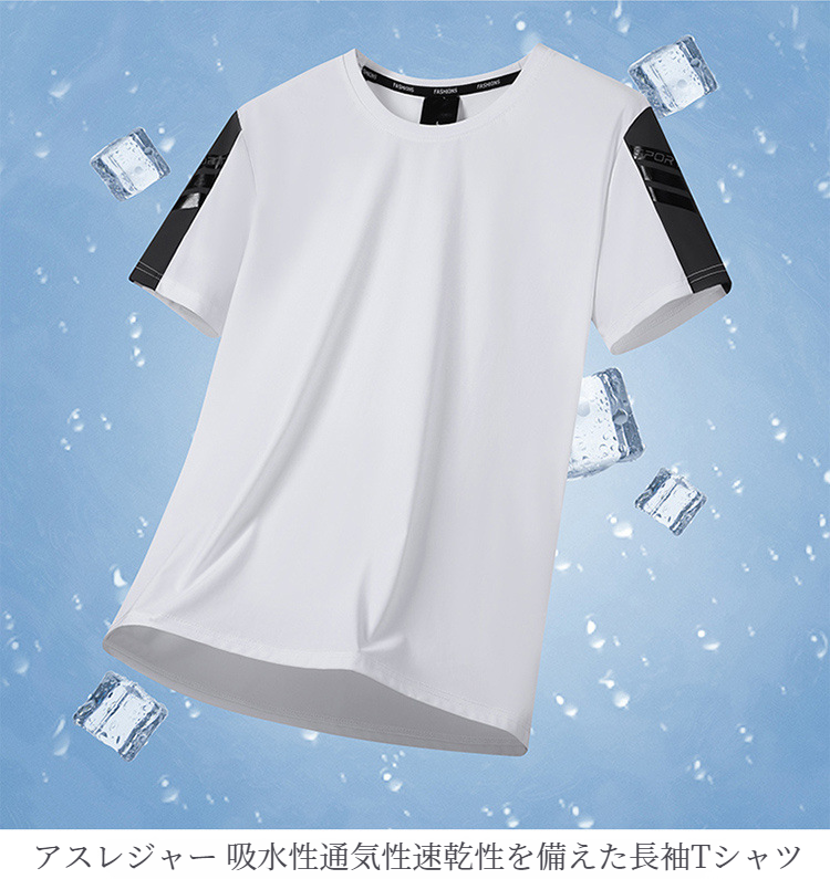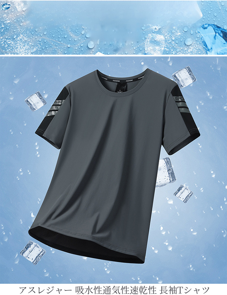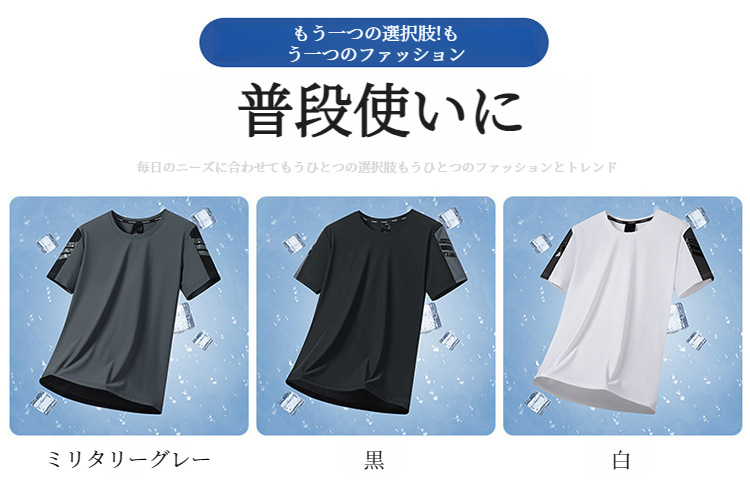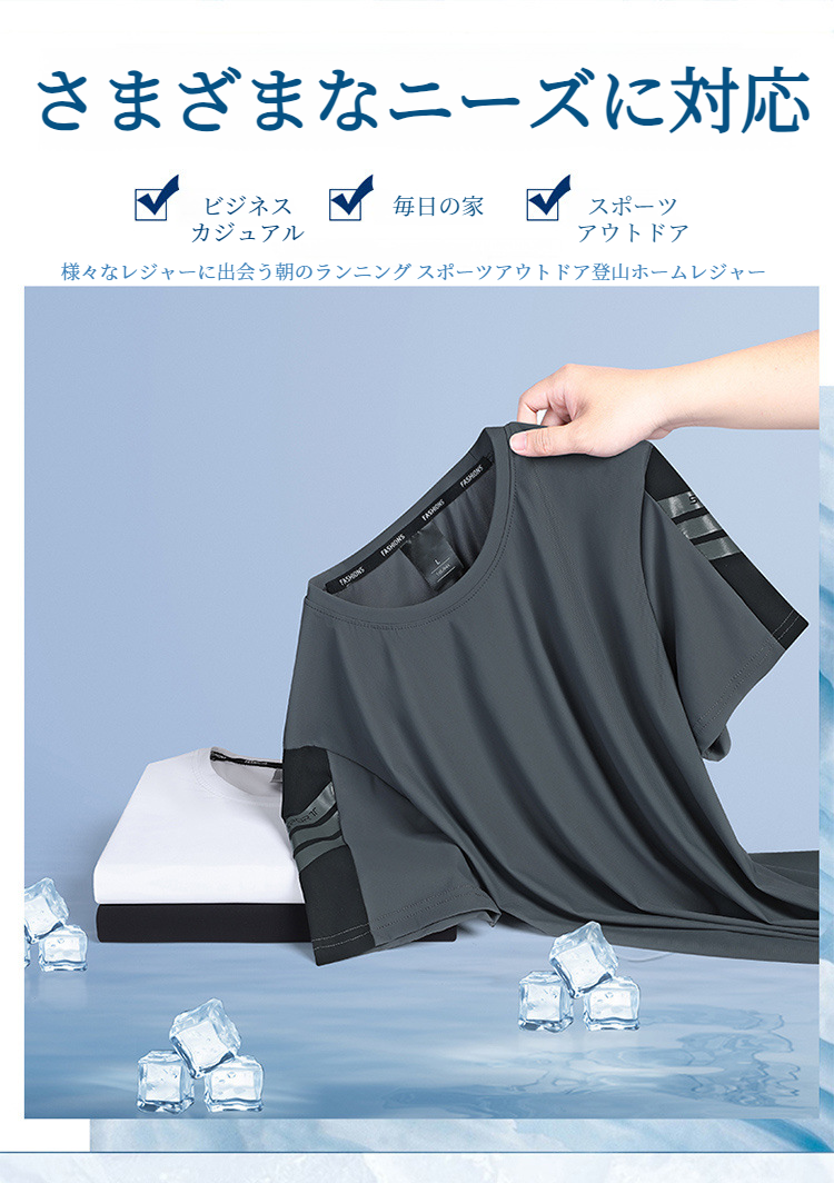 メンズ半袖Tシャツ 速乾通気性アイスシルクストレッチカジュアルトップライトボトム半袖Tシャツ